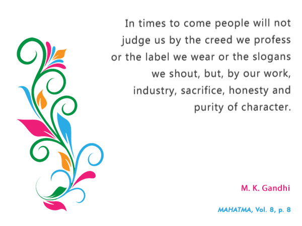 Mahatma Gandhi had a multifaceted personality. His aim in life was to achieve enlightenment by serving his nation and mankind. He was born in India and so he was of the opinion that it was his first duty to serve India. He did it through his thoughts, creative activities, different movements, organisations, and his own lifestyle. His creative activities can be classified in 18 forms which cover mainly political, economic, social, educational, religious as well as medical fields. Many forms of his activities were related to economic wellbeing of society. He was clear that economic self-sufficiency for an individual and for a nation is unavoidable. This led him to think about and study various economic problems of the country and devise action plans for solving them. This was the root of his economic thinking. His work, discussions or writings therefore, were not educational fancy but were the need of the hour. He knew that the major part of human life is busy in economic activities. In that case economic activities can never be without ethics and non-violence.