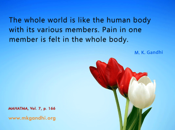 This idea of Gandhi to help the poorest of the poor has brought about a peaceful revolution in the world. He has shown a way to this extremely materialistic, acquisitive, narrow-minded and selfish world. Today Gandhi may not be among us, but he manifests himself through many individuals in our society.